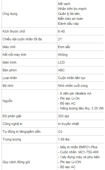 • Máy in tem nhãn công nghiệp cầm tay BMP21 Plus