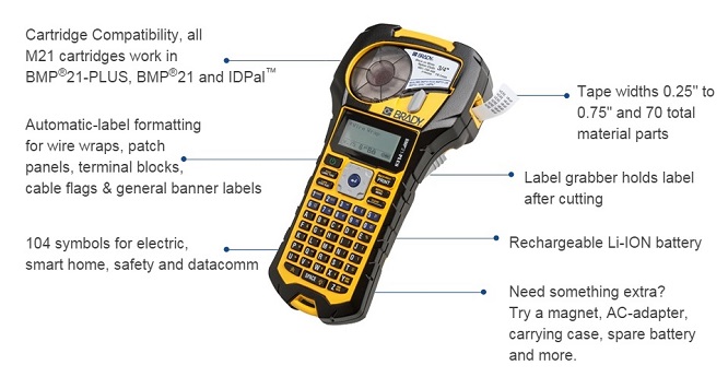 Máy in tem nhãn công nghiệp cầm tay model Brady BMP®21-PLUS là bản nâng cấp của BMP21 được bảo vệ bởi lớp cao su chống sock, va đập cùng với khả năng in nhãn thông minh trong việc đánh dấu thanh đấu nối, dây cáp,  thiết bị ….Đây là máy đánh nhãn lý tưởng cho nhu cầu quản lý sản phẩm.